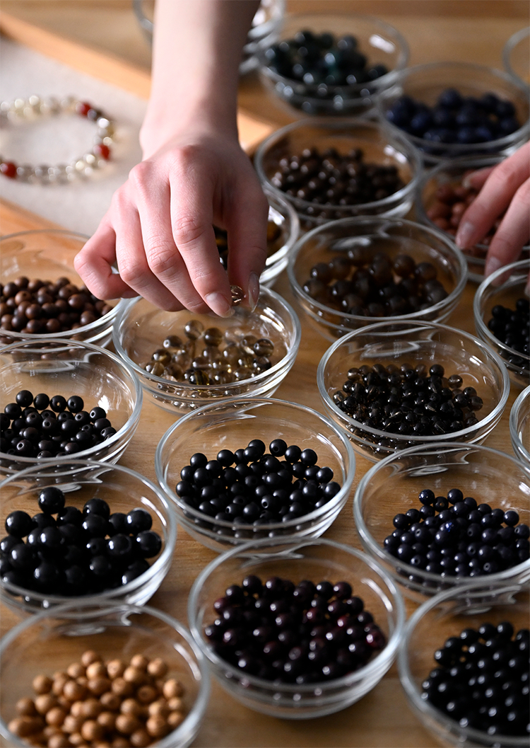 Thread each bead by hand, feeling the gentle rhythm of the process. This is where mindfulness begins—steady movements, calm focus, and intention in every step.